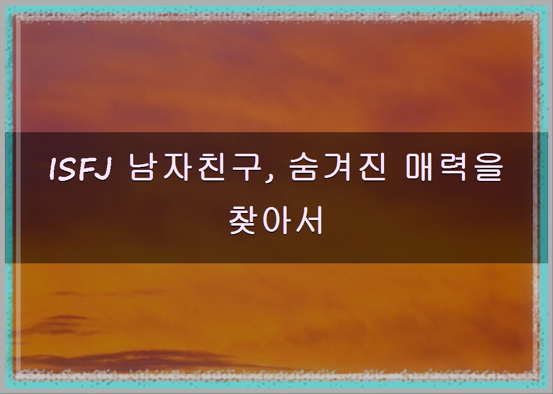 이 글을 통해 ISFJ 남자친구에 대한 긍정적인 인식을 심어주고, 그들의 매력을 더욱 잘 이해할 수 있도록 돕고자 합니다.