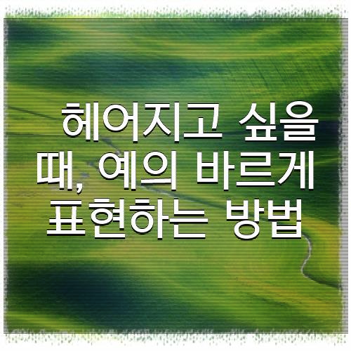 헤어지는 것은 결코 쉬운 결정이 아니지만, 예의 바르고 존중하는 방식으로 진행한다면, 서로에게 상처를 줄 수 있는 부분을 최소화할 수 있어요. 헤어짐은 새로운 시작을 의미하기도 합니다. 이 시간을 통해 더 나은 미래를 위해 나아가길 바랍니다.