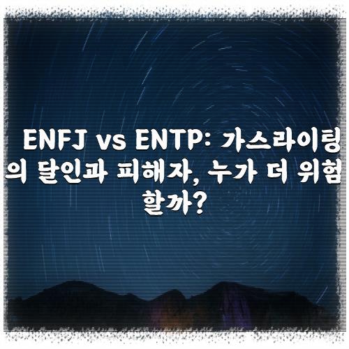 흥미롭게도, 특정 성격 유형은 가스라이팅에 더 취약하거나 가해자로서의 가능성이 높다는 연구 결과가 존재합니다. 과연 어떤 유형이 가스라이팅의 달인일까요? 오늘은 MBTI 성격 유형 중 ENFJ와 ENTP를 대상으로 가스라이팅 특성을 심층 분석하고, 개인차의 영향까지 고려하여 진실을 밝혀보겠습니다.
