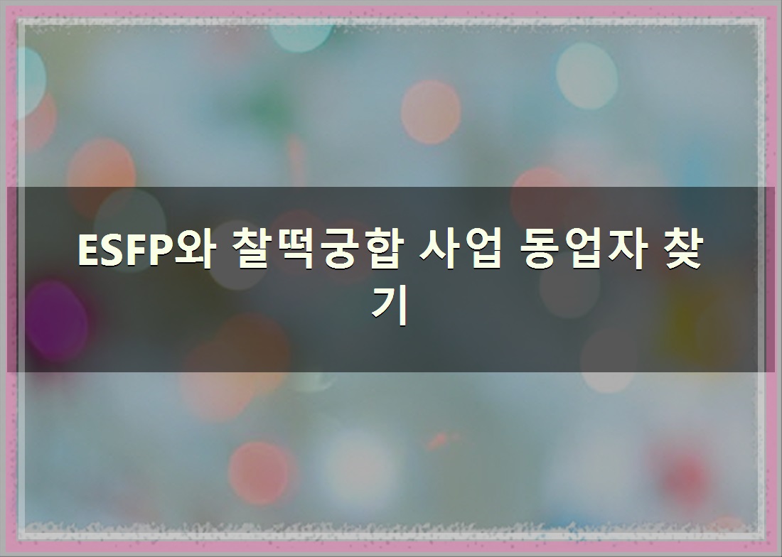 공유드린 내용은 ESFP와 찰떡궁합 사업 동업자 찾기 입니다. 위 내용들이 도움이 되셨길...