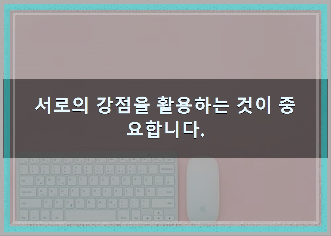 예를 들어, 의견이 충돌하는 경우 서로의 입장을 충분히 논의하고 양측이 모두 어느 정도 만족할 수 있는 타협점을 찾는 것이 중요합니다. 또한, 서로에게 양보할 수 있는 부분을 찾고 서로를 이해하려 노력하는 자세가 필요합니다.