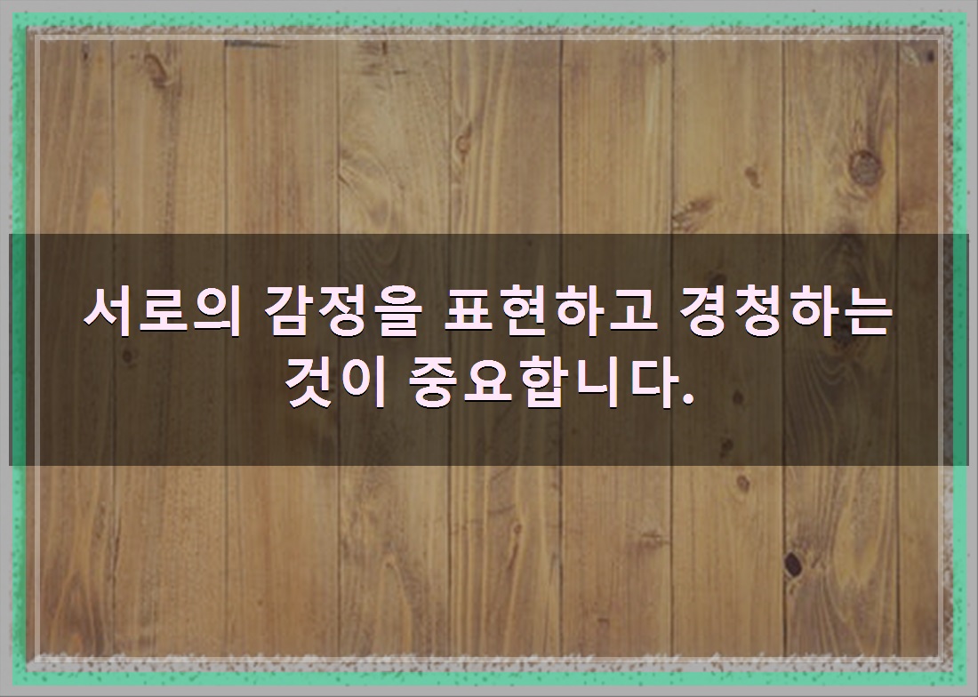 서로의 감정을 표현하고 경청하는 것이 중요합니다.