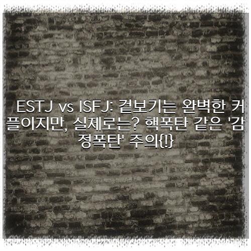 ESTJ vs ISFJ: 겉보기는 완벽한 커플이지만, 실제로는? 핵폭탄 같은 '감정폭탄' 주의! 관련내용 확인 해 보시겠습니다.