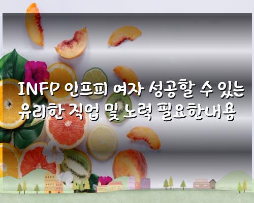 소개드린 내용은 INFP 인프피 여자 성공할 수 있는 유리한 직업 및 노력 필요한내용 관련입니다. 필요한분께 좋은 내용이 되셨으면 합니다.