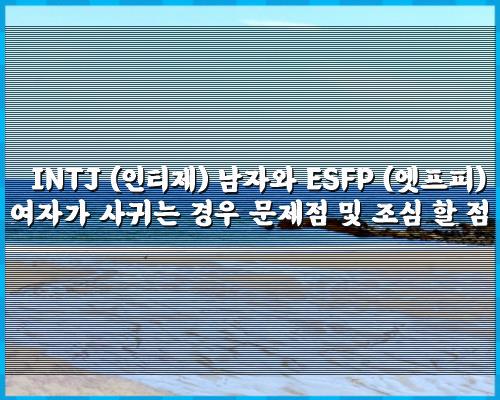 INTJ (인티제) 남자와 ESFP (엣프피) 여자가 사귀는 경우 문제점 및 조심 할 점 바로 내용보시겠습니다.