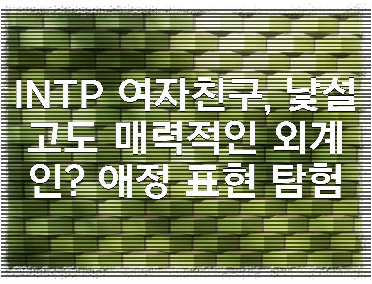 정리드린 내용은 INTP 여자친구, 낯설고도 매력적인 외계인? 애정 표현 탐험 관련 정리 입니다. 이 글이 모두에게 좋은 정보가 되셨길 바랍니다.