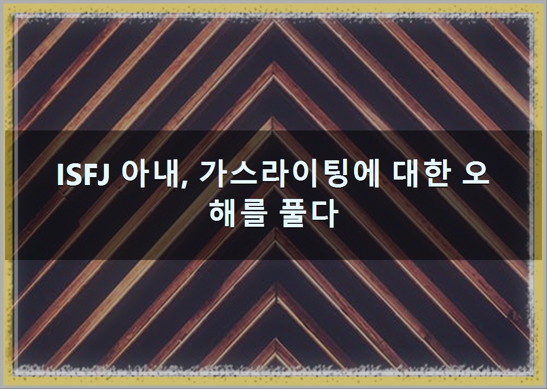 ISFJ 아내가 가스라이팅을 당하거나 이용한다는 말, 정말일까요 ISFJ 유형의 특징을 통해 알아보는 가스라이팅에 대한 진실 이번기회에 제대로 확인해드립니다.