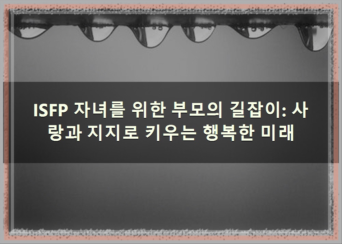 이 글이 ISFP 자녀를 키우는 부모님께 도움이 되기를 바랍니다.