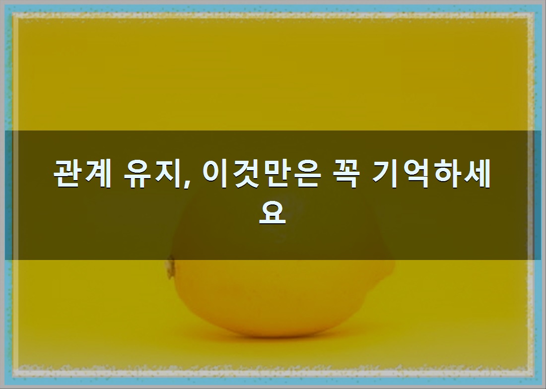 관계 유지, 이것만은 꼭 기억하세요