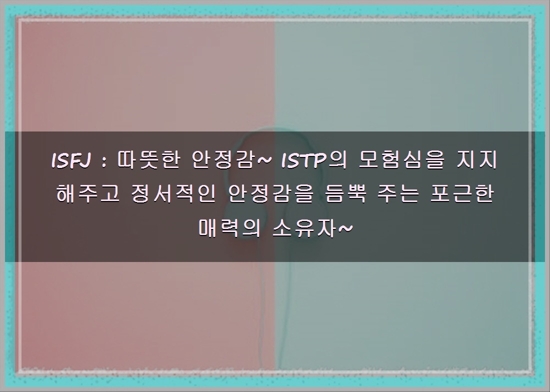 ISFJ : 따뜻한 안정감~ ISTP의 모험심을 지지해주고 정서적인 안정감을 듬뿍 주는 포근한 매력의 소유자~