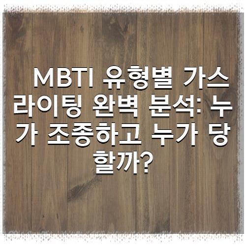 혹시 누군가 기억, 감정, 심지어 현실까지 뒤흔들어 놓은 적이 있나요? 마치 정신 나간 것처럼 느낄 정도로 말이죠. 만약 그렇다면, '가스라이팅'이라는 심리적 조작의 피해자일 가능성이 높습니다. 하지만 누가 가해자이고 누가 피해자인지 궁금하지 않나요? 오늘은 MBTI 유형별 가스라이팅 성향을 흥미진진한 분석과 함께 밝혀보겠습니다.